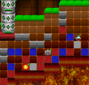 The Main Base is the strongest building. It can spawn other buildings in to the game and it can also destroy blocks of the terrain in order to clear space or collect bonus upgrades. It also adds to population and acts as a Silo (see below). Currently, when all of a players base buildings are destroyed, that player is defeated.